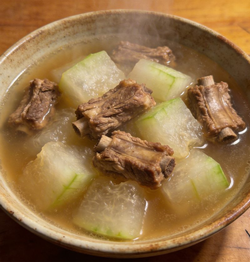 夏天喝冬瓜排骨汤,清热解暑。我妈说她每次做,冬瓜透明软糯,排骨鲜香,汤清爽好喝。 我买了一块排骨、一圈冬瓜,兴 …