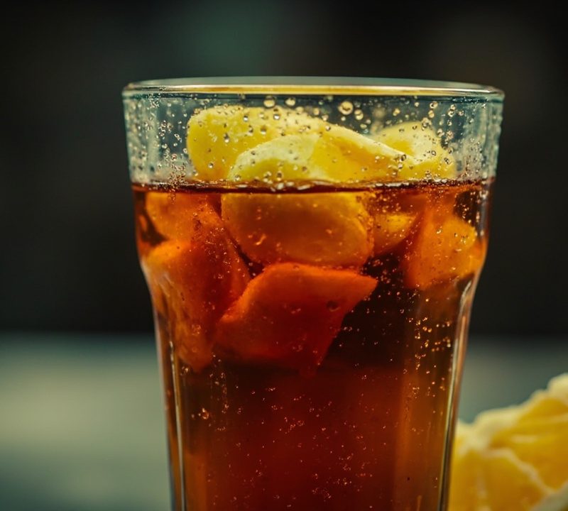 - 茶汤放凉后倒入杯中,加入糖浆调味(糖浆比白砂糖更好融化)