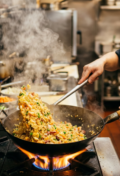 3. 炒饭时油要够,大火快炒,不断翻动