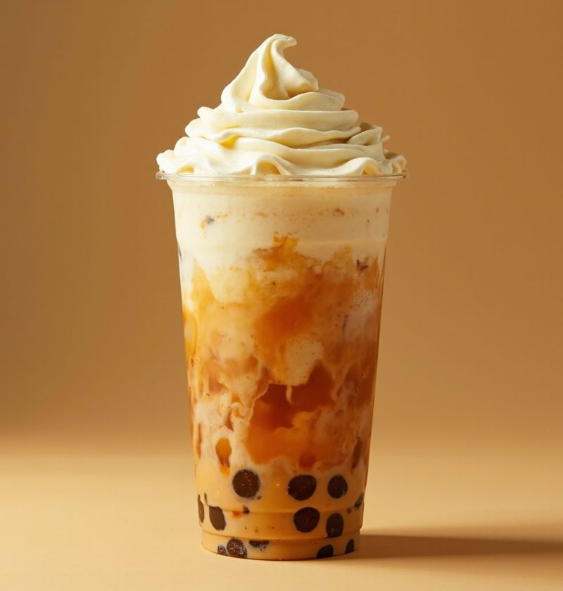 芝士奶盖,绵密的奶盖浮在茶饮上,是奶茶店的人气单品。