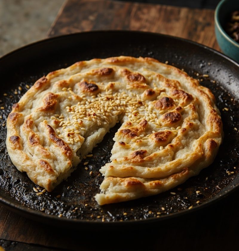 4. **中小火**:平底锅小火热烙,经常翻面